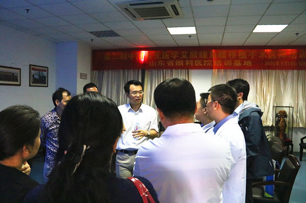 2015年9月10-12日,由山東省眼科醫院與中國再生醫學國際有限公司合作成立的我國首個角膜移植手術醫師培訓基地順利完成了對第二批學員的培訓。按照角膜移植手術醫師培訓基地招生章程的規定,培訓采取理論學習與臨床實踐相結合,以臨床實踐為主的培訓方式進行,12位學員順利通過培訓并獲得培訓證書。