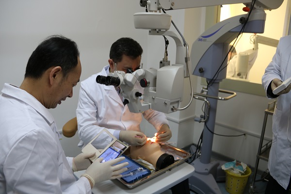 李素霞副主任醫師指導學員進行角膜移植操作