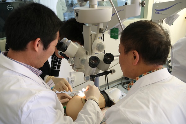 學員認真觀看高華教授進行生物工程角膜手術實操