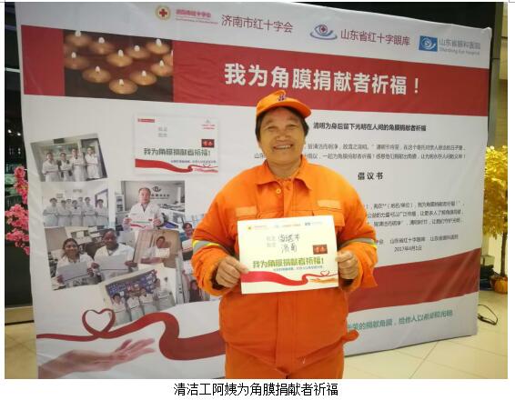 ? 綠地中心祈福活動中,在山東省紅十字眼庫工作人員、濟南市紅十字會志愿者、山東省眼科醫院志愿者的介紹下,市民紛紛參與到祈福活動中來,從步履蹣跚的老人到稚氣未脫的幼童,從辛勤勞動的環衛工人到行色匆匆的公司白領,大家紛紛拿起祈福紙板來到祈福幕布前,默默地為角膜捐獻者獻上最真摯的祝福與感恩。很多市民在參與祈福的過程中一直在詢問工作人員捐獻角膜的流程與相關事宜,市民劉大爺告訴志愿者:“在退休前,我也是一名醫務工作者,深知捐獻角膜能給他人帶來光明的希望,等我百年以后,我也要捐出角膜。”