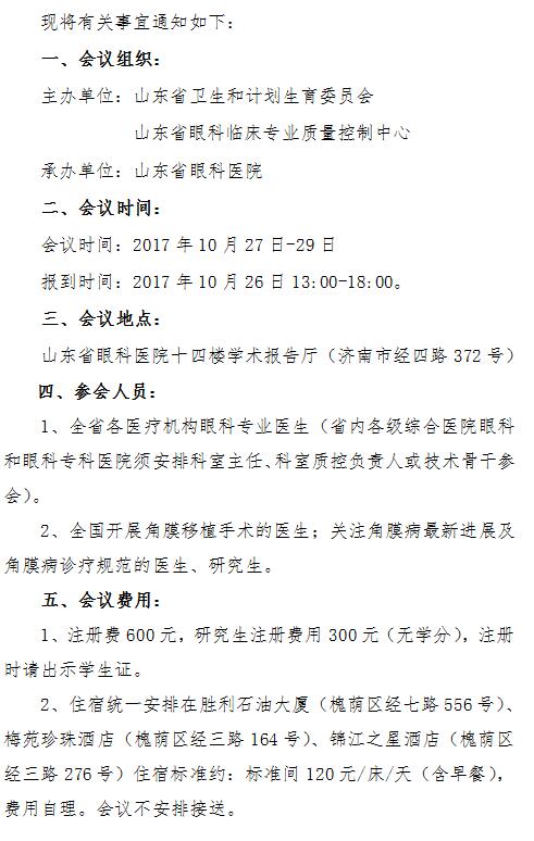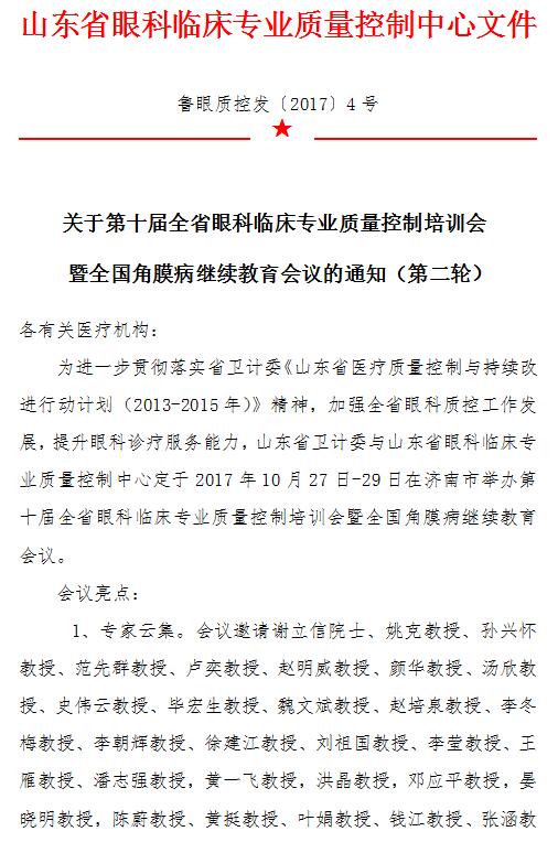 第十屆全省眼科臨床專業質量控制培訓會第二輪通知