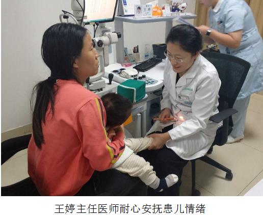 中秋節當天是省眼科醫院副院長王婷主任醫師出專家門診,眾多患者在護士的引導下有序等候就診。在這些患者中有多位幼兒患者,他們都是從外地長途跋涉來省眼科醫院治療的難治癥患者。王婷主任醫師囑咐護士:“一定要好好安撫患兒和家長情緒,可以讓家長先帶著患兒到醫院特設的母嬰休息等候。”在接診多位幼兒患者時,王婷主任醫師為了消除患兒的緊張抵觸情緒,像對待自己的孩子一樣與患兒開玩笑,盡量輕柔的完成所有的檢查。