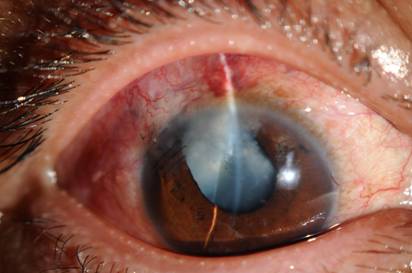 ?患者老李,因工作時未戴防護鏡,不慎鋼筋戳傷右眼后視力嚴重下降,在當地醫院就診行急癥角鞏膜裂傷縫合,縫合后檢查視力下降至眼前手動視力。