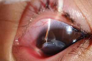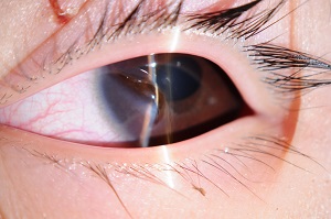 兒童由于防護意識差,角膜穿通傷較常見,多為銳器所傷,如鐵絲、筆尖等,致傷物直接刺向角膜導致的角膜破裂傷。單純性角膜穿通傷,傷口較小并且規則,無眼內容物脫出,常會自行閉合;較復雜的穿通傷傷口大,不規則,伴有虹膜脫出和嵌頓,可伴有晶狀體的破裂和眼內組織的損傷。