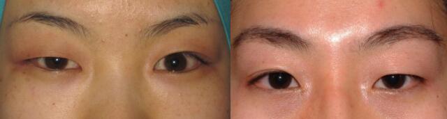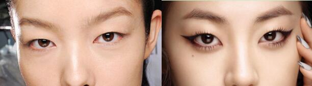 醫生解析:只有低垂雙眼時才能看到重瞼的皺褶,顯得上瞼臃腫,總給人刻意瞪眼的感覺。即使畫寬眼線,仍不靈動。