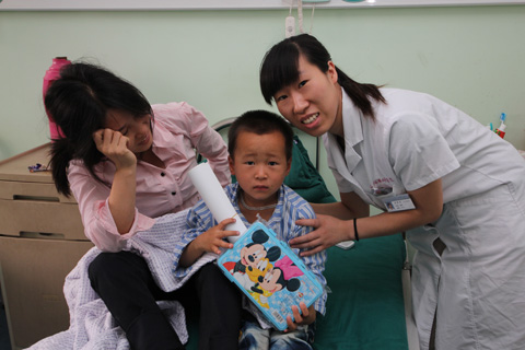 ????上午9點,醫務部組織各病區護士長及管床醫師一一為孩子們分發了禮品,親切的慰問每一個小患者,并祝愿他們早日康復。孩子們手捧禮物個個樂開了懷,仿佛忘記了病痛,忘記了自己是在醫院,病房里傳來一片片歡聲笑語……!???