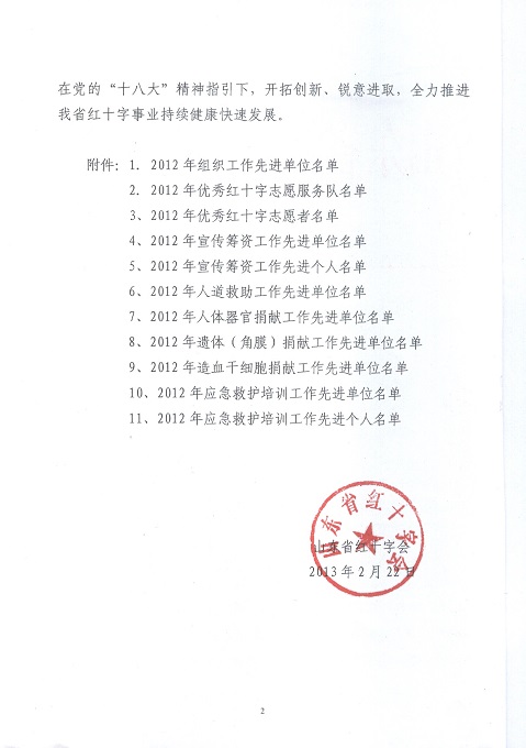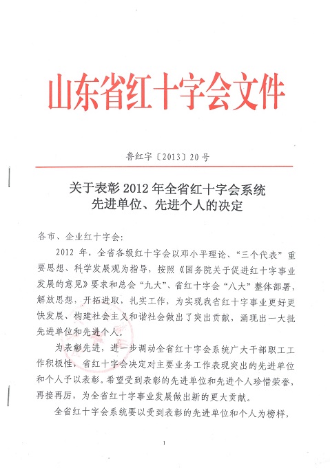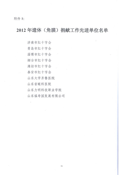 近日,山東省紅十字會對2012年度全省主要業務工作中表現突出的先進單位和個人進行了表彰,我院作為山東省紅十字眼庫所在單位,榮獲“2012年度遺體(角膜)捐獻工作先進單位”稱號,一人榮獲山東省紅十會優秀志愿者。