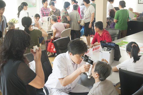 ??? 醫生趙越超為社區居民進行眼科檢查?