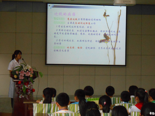 ????下午我院由兒童視力方面的專家單鳳梅大夫組成的四人志愿者小分隊來到棋盤街小學為一百余名小學生舉行了“如何預防近視”的眼科知識講座,并為每位同學送去視力表和眼睛布一份。活動期間,為活躍氣氛,調動同學們的積極性,我院的志愿者還特地準備了許多精美小禮品,受到老師和同學們的熱烈歡迎。??