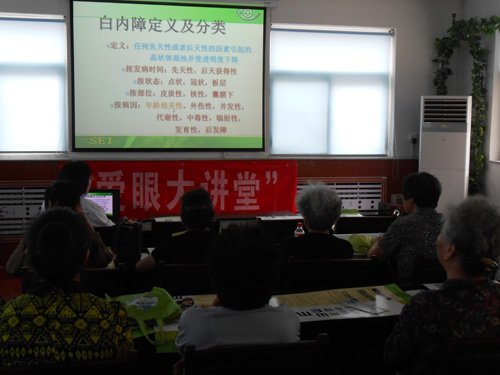 ????6月4日和5日我院以白內障科的張輝大夫為核心的志愿者團隊來到公祥街社區居委會和濟柴社區居委會舉辦以白內障為主題的眼科知識講座,有近百位居民參加。講座結束后,我院的志愿者為居民朋友們送去視力表、眼科常識手冊、眼鏡布及精美紀念品一份,受到了居民朋友的一致好評。??
