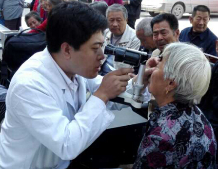 山東省眼科醫院眼底科醫生趙越超大夫為當地村民檢查