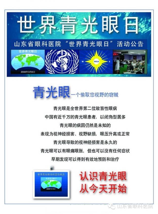 ??? 眾所周知,青光眼是全球第二位致盲性眼病。世界青光眼協會和世界青光眼患者協會在2008年共同發起將3月6日定為世界青光眼日。旨在提高青光眼的知曉率,希望能通過篩查能早期發現。