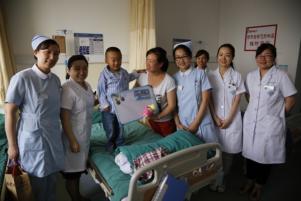 ??? “謝謝你們的愛心。”“謝謝叔叔阿姨為我們準備的禮物。”病房里不時傳來感謝的話語及歡笑聲,看著孩子們拆開每一件禮物,臉上燦爛的笑容,仿佛忘記了病痛,忘記了自己是在醫院,我們衷心祝愿他們早日康復。?