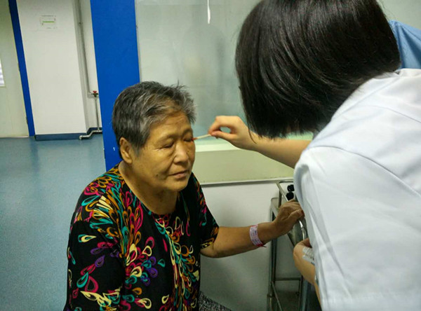 山東省眼科醫院白內障科孫吉君醫師為老人進行術后檢查