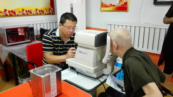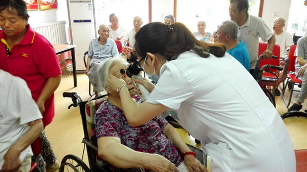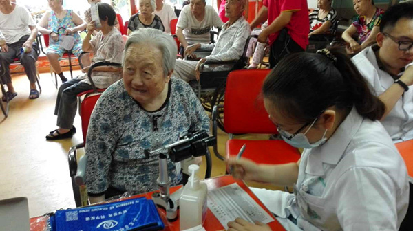 2015年8月5日山東省眼科醫院義診分隊來到位于濟南市天橋區清河社區的心家園老年公寓,為在此居住的老人進行義診。此次義診與山東省眼科醫院新一輪“白內障復明”公益項目相結合,醫護人員對在義診中篩查出的老年白內障患者進行詳細的解釋說明,對符合條件的患者現場填寫發放“白內障復明”公益項目檢查通知單,為在義診中發現的白內障患者開通綠色通道,做到快速報名、快速審核、快速檢查、快速住院、快速手術。