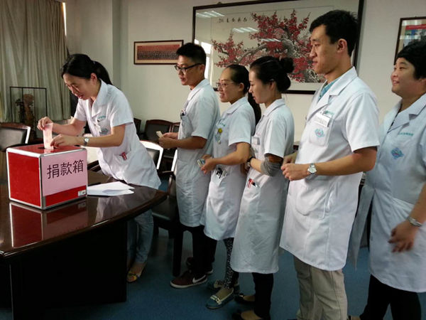 經過近一上午的捐款,山東省眼科醫院職工共為小全全捐款9400元,基本解決了小全全初期治療的所有費用。當王婷副院長親手把善款送到小全全母親手里時,孩子母親激動的說不出一句話來,抓著王婷副院長的手眼淚直流。孩子的父親不斷地重復:“真是太感謝了,真是太感謝了,你們救了孩子的命,救了我們全家的命啊。”