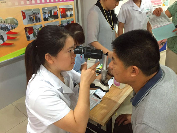 山東省眼科醫院王欣醫師為槐蔭區政府工作人員進行眼部檢查