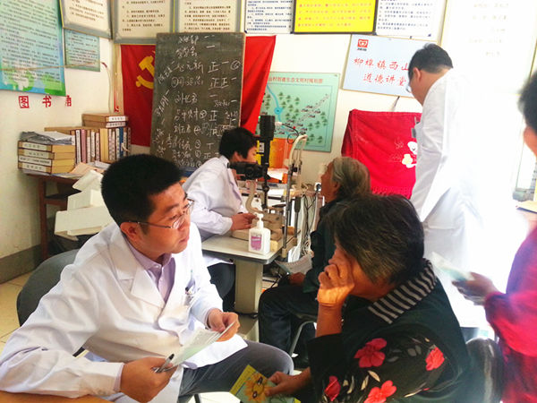 10月16日一早,山東省眼科醫院義診分隊就驅車前往西山村,在村民活動室迅速調試好設備,為村民展開醫學驗光、裂隙燈檢查。前來參加義診的大部分是老年人,因為不注意用眼衛生或患有眼疾但是沒有及時進行治療等原因,很多老人被檢出眼部疾病,義診現場,山東省眼科醫院的亓曉琳博士與李光偉醫師耐心的對患者進行了病因講解與治療方法的解答,并對村民關于眼部疾病的誤區進行了知識普及,亓曉琳博士說:“很多村民在收栗子、核桃時眼部受傷,應該及時檢查并采取相應措施,以免造成更嚴重的后果,建議村民佩戴護目鏡;有些老人對白內障還存在著眾多誤區,藥物是無法治愈白內障的,目前唯一的方法是通過手術治療,并且山東省眼科醫院針對貧困村的實際情況,對村民制訂了相應的幫扶政策,具體政策為使用國產晶體,免除全部費用,使用進口晶體,僅收取1000元。”