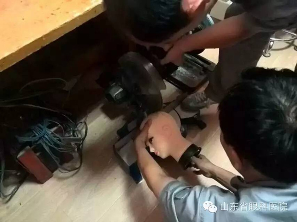 山東省眼科醫院后勤部張林海主任與劉傳寶組長對角膜移植模型進行設計