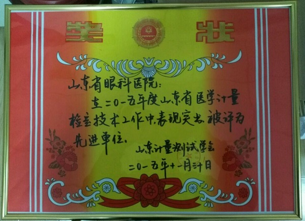 我院作為山東計量測試學會醫學計量專業委員會委員單位,在2015年中積極參與配合山東省計量院、山東計量測試學會醫學計量專業委員會組織的各項惠民活動,得到了各級領導的肯定。我院在2015年度山東省醫學計量檢定技術工作中表現突出,被評為先進單位。2015年度全省先進單位共18家,我院是其中之一。?