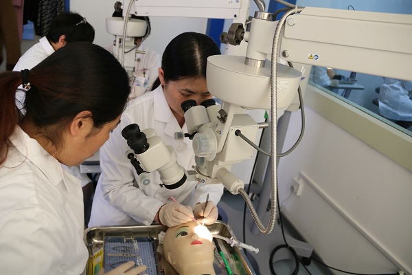學員認真觀看高華教授進行生物工程角膜手術實操