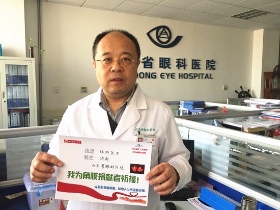 中華醫學會眼科學分會角膜病學組委員、山東省眼科醫院副院長高華教授為角膜捐獻者祈福