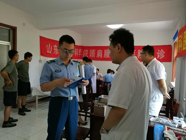 27日一大早,山東省眼科醫院聯合山東省醫學科學院頸肩腰腿痛醫院組成的義診分隊準時來到空軍駐地,在駐地后勤人員的協助下迅速安裝調試好裂隙燈、驗光儀等設備,做好了為官兵服務的準備。駐地官兵在工作之余紛紛來到義診場地,請省眼科醫院的專家進行眼部檢查,士官小劉說:“空軍對視力的要求是特別嚴格的,雖然我們不是作戰部隊,但是也要發揚空軍的優良傳統,保護好眼睛,這次省眼科醫院的專家來到駐地,不但為我們進行了詳細的檢查,還給我們普及了詳細的愛眼護眼知識。”